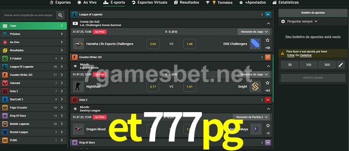 A aposta et777pg oferece aos jogadores a experiência mais conveniente de apostas em eSports!